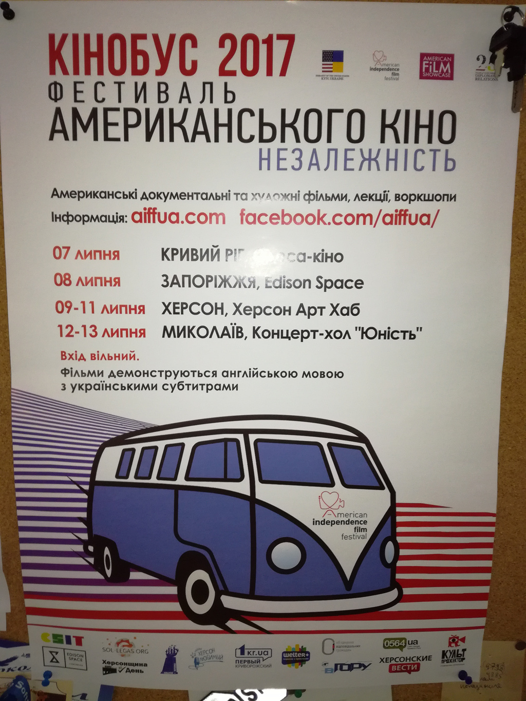 В Херсон та Миколаїв приїжджає фестиваль американських фільмів. Фестиваль в Херсоні проходитиме з 9 по 11 липня 2017 року в приміщенні Kherson Art Hub (вул. Гімназична, 30А). Фільми показуватимуть англійською з українськими субтитрами. В Миколаєві фестиваль перебуватиме 12-13 липня в бібліотеці ім.Кропивницького та концерт-холі “Юність”.