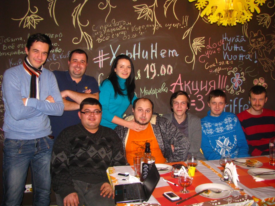 14 января, в канун Старого Нового года, представители херсонского и николаевского сегмента сети Интернет, а именно любители микроблогов Twitter, собрались в пиццерии Griffel, куда всех пригласил Алексей Пирогов @desperado_alex. На встрече, начавшейся в 19-00, часть пользователей присутствовала виртуально, например, координатор встречи херсонцев Владислав Гладкий @tehi0hs, а также Наталья Ткачёва @nagolos, @Chas1778, Сергей Никитенко @Khersonschina и Александр Базилев. С николаевской стороны на встрече присутствовали, ели пиццу и пили виски @ANDRUHOV, @gazzete_mk_ua, @Aleks_Nikishin, @an_gry, @inkerman89, @luckyander и @bombochka. Специальным гостем встречи был @drunktwi – любой из присутствующих может пока только завидовать количеству фолловеров у его твиттера, если вы понимаете о чём я